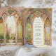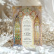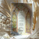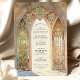 Set the tone for a grand celebration with this Gothic Cathedral-inspired wedding invitation, featuring stunning stained glass windows in vivid hues of green, gold, and red. The intricate architectural arches and vibrant floral motifs reflect timeless elegance and spirituality, ideal for church weddings or vintage-themed ceremonies. The serene countryside view adds a romantic touch, while the back showcases a harmonious continuation of the stained glass design. This invitation combines artistry and sophistication, creating an unforgettable keepsake for your wedding day.