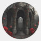 Gothic Cemetery Gazebo with Red Roses at Night Classic Round Sticker