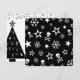 Black and white Christmas party invitation decorated with skulls, stars and snowflakes.