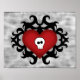 Adorable black damask motif drawn by me with a red heart on it and a punk skull. So cute. Shown here on a grungy grey poster.
