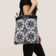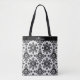 A black and white vintage-looking damask pattern covers this elegant tote bag that has a distinctive Goth look.