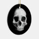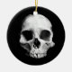A cool deformed fantasy skull in white on a black background and printed on this awesome ornament.
