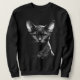 Gothic Devon Rex Art Women's Sweater." A striking dark art portrait of a monochrome large-eared Devon Rex. This goth illustration is ideal for cat moms and gothic fans who love this unique, curly-haired cat breed. Stay cozy and fierce in this black women's crewneck!