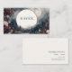 Step into a world of dramatic romance and dark fantasy with this captivating, atmospheric business card. The design features a stunning nocturnal landscape, shrouded in mist and mystery, where dark pine forests meet rolling, distant mountains and a flowing, reflective river or lake. Overhead, a large, pale full moon dominates the sky, casting an ethereal glow. The scene is richly bordered by abundant, lush vintage floral clusters, showcasing deep burgundy red and creamy white roses with dark foliage, giving the artwork a moody, Gothic aesthetic. A shimmering, thin double-layered gold circle highlights the central area, focusing attention on your core information. This card creates an unforgettable, artistic statement that blends natural beauty with dramatic storytelling. This business card is ideally suited for a tattoo artist specializing in dark botanical or vintage art, a spiritual reader or mystic offering enchanting services, or an independent book store owner promoting a sense of old-world charm. It would also perfectly suit an exclusive floral designer known for deep, dramatic arrangements or a creative director looking for distinctive, high-impact branding.