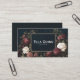 Define your brand with dramatic elegance using this captivating, atmospheric business card. The background is a velvety midnight blue night sky speckled with tiny stars and hints of deep celestial glow, setting a mysterious and sophisticated scene. A thin, simple metallic gold frame elegantly highlights the center, drawing the eye to the core of your information. The borders are richly adorned with abundant, vintage-style floral clusters, showcasing deep burgundy and dusty rose blossoms beautifully mixed with striking creamy white roses and dark green-brown foliage. This artwork blends intense, gothic color and delicate botanical detail, creating a powerful, unforgettable impression that channels both romance and mystery. This business card is ideally suited for a tattoo artist specializing in dark floral or vintage art, a boutique owner selling exclusive, high-fashion accessories, or an independent book store proprietor promoting a sense of dark academia and old-world charm. It would also perfectly suit a spiritual advisor or mystic offering enchanting services or an exclusive event stylist known for moody, romantic themes. The card's captivating dark romance and intricate vintage floral artistry make it versatile for any unique announcement, a dramatic literary-themed party invitation, or a sophisticated gift enclosure.