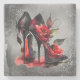 Gothic Fashionista Red Bottom Stilettos with Roses Stone Coaster