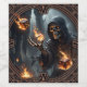 Gothic Flames, the guardian of the burning dice. The figure of the Grim Reaper stands amidst a circle of burning dice, reminiscent of small fire sources and suggesting magical or apocalyptic energies. The dark and blurred background reinforces the mystical and gloomy atmosphere.