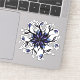 Gothic floral sticker with a cool weird mandala illustration - digitally coloured ink drawing of a strange flower with reptile monsters with sharp teeth in black, violet and blue colours.