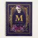 Gothic Floral Skull Dark Blue Custom Monogram Name Planner