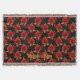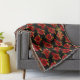 Crimson red, black and gold gothic blanket featuring a dramatic rose pattern.