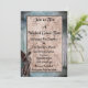 A worn, dark wooden frame with a stone angel holds grungy damask and an invitation to a Halloween party. The back side has the same damask pattern, with skeletons lounging on the words "Happy Halloween." Cute and fun!