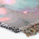 A quality printed throw has its advantages. This is a much finer weave throw than its loopier cousins, and though lighter, it is worth the investment for custom room accessorizing. The back is much prettier than the typical brown, and the fringe on the long sides very vivid, the selvage nicely done. Before photographing, I washed the throw in cold water, delicate, with a thicker woven throw the same size. On tumble dry low, this throw was dry in half the time as the other. This is a very practical quality if you use throws for furniture covers or to wrap up in frequently. The sleekness of the fabric makes it a great layer for accenting or protecting without the feeling of sitting on too much stuff. Perfect for napping or when you feel a light chill coming on. The color printing is beautiful and on this fabric, matched the design and color of my Photoshop image. This is an advantage for blending room fabrics and colors. The fringe on the short sides prints the colors from the design image and therefore varies from the side fringe. I streaked a white fractal line through the plaid pattern to give the illusion of weaving. This printed as crisp as an illusory thread, and put some white in the short side fringe, showing another advantage of print vs loomed- for artistic purposes, line lines, detail, and color integrity can be planned and preserved. My loomed throws have color limitations and more of a needlepoint texture. Print throws reproduce an exact image. The throw felt a little stiff straight out of the package, but this went away in the first delicate wash. Of course I searched the wash water for ink or bleeding and there was none.