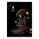 These graphic tees and other items have an image of a geisha holding a parasol, but in a gothy colour scheme with skulls