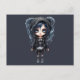 Gothic Girl Black and Grey Halloween Holiday Postcard