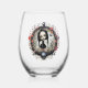 Gothic Girl with Flower Wreath Stemless Wine Glass