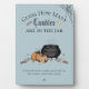 This Halloween Baby Shower game is called "Guess How Many Candies". The design: Hand-drawn in black ink, this card features a bubbling cauldron, candies, candy corn, spiderwebs and a pumpkin, all against an elegant French blue background.