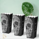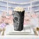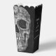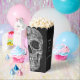 This Gothic macabre grunge texture black and white printed cool half skull head wedding favour popcorn box features a spooky, creepy, evil, sinister, custom, trendy, unique, modern, scary Halloween style design. Image copyright Marg Seregelyi Photography.