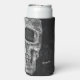 Gothic macabre black and white design. Cool grunge printed texture half skull head seltzer can cooler. Spooky, modern, unique, creepy, evil, sinister drink holder. Personalise your name and Goth script. Trendy, scary Halloween style kitchen decor. Image copyright Marg Seregelyi Photography.