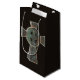 The stone cross has a cool looking gothic feel with a weathered exterior finish including colours of black brown grey copper blue green turquoise patina.