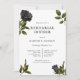 Gothic wedding rehearsal dinner invitation featuring illustration of black roses on a white background. Perfect for a halloween wedding.