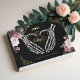 Our gothic Halloween skeleton hands heart baby shower real foil guest book is perfect for the modern mother-to-be who embraces a unique and edgy aesthetic for her baby shower celebration. Our design features our hand-painted watercolor skeleton hands creating a heart and a heart shape delicately adorned with gothic elements including stars moons and our handpainted watercolor gothic florals. Real foil accents adds a classy and elegant look. Design captures the essence of a cute mystical and charming gothic theme. Where elegance meets a whisper of the mystical and gothic charm, creating the perfect prelude to your little boo's arrival. Original hand-drawn watercolor artwork and design by Moodthology Papery.