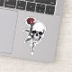 The Skull Rose Design sticker features a captivating blend of dark and delicate elements, showcasing a skull pierced by a blooming rose. The detailed artistry creates a striking visual contrast, with the rose emerging from within the skull, symbolising the interplay of life and death, beauty and decay. This sticker is perfect for those who appreciate a unique and bold statement piece, combining gothic charm with floral elegance to create an unforgettable aesthetic. Ideal for decorating laptops, water bottles, notebooks, or any personal item, this sticker adds a touch of individuality and artistic flair wherever it's placed.