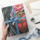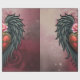 Gothic Heart with Bloom and Wings. The heart shines in vibrant red and is surrounded by an elegant golden border. The heart is decorated with a delicate cross pattern that underscores its meaning and symbolism. A delicate pink flower sits atop the heart, adding a touch of romance and softness. Majestic wings, painted in dark grey, spread out from either side of the heart. The wings are detailed, with fine lines and shading that give them a slightly gothic feel and convey the impression of protection and freedom.