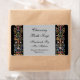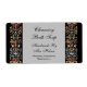 An editable soap, product or craft label with elegant script letters on light grey and vintage gothic art from an antique illuminated manuscript with colourful flowers and scrolling leaves on a black background.