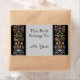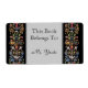 A custom bookplate or custom text label with script and block text and vintage baroque art restored from an illuminated manuscript with colourful flowers and scrolling leaves on a black background. Customise It to change fonts, sizing and more, even save your design for later.
