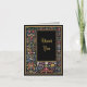 An editable Thank You card with vintage gothic art from an antique illuminated manuscript, colourful flowers and scrolling leaves on a black background on the front and manuscript elements on the inside.