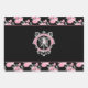 Gothic Love | Pink and Black Skeleton Heart Floral Wrapping Paper Sheet