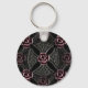 A mediaeval round, kaleidoscope pattern of an iron cross and rose on a key chain.
