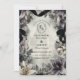 An elegant and dramatic wedding design framed with black, grey, and ivory florals. The moody colour palette and vintage-inspired details create a sophisticated, romantic, and slightly gothic aesthetic — perfect for couples planning a black-tie, alternative, or evening celebration.