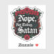 Keep bad vibes away with this gothic Nope Not Today Satan sticker featuring dramatic flames, bold roses, and vintage script. A fun way to add attitude to your laptop, tumbler, planner, or anywhere you need a little spiritual armour. Printed on high-quality vinyl with a glossy, long-lasting finish. Makes a great gift for faith-filled friends with a sense of humour. Perfect for standing strong in style.
