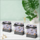 Personalised "Thank You" Halloween/Fall Baby Shower favour box, featuring hand-drawn baby carriages, black crows, witch hats, pumpkins, spiderwebs and tiny mushrooms against an elegant light purple background. Printed on both front and back. Simply click on "Personalise this template" to insert your own Event and Date.