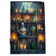Present your gifts in gothic style with this potion shelf gift bag. The watercolor bottles, skull, and glowing candles create a unique way to wrap presents for Halloween, gothic birthdays, or witchy friends.