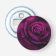 A bottle opener with a close-up image of a gothic looking purple magenta rose. A dark and mysterious style.