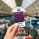 Name badge with a close-up image of a gothic looking purple magenta rose. A dark and mysterious style.