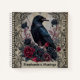 Set the tone for a dark academia aesthetic with this personalised spiral notebook. The visual features a striking black raven illustration perched amidst moody crimson roses and intricate vintage filigree patterns. It is the perfect way to capture daily reflections or a thoughtful gift for an aspiring poet.