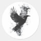 Gothic Raven Illustration: Smoke and Feathers Classic Round Sticker