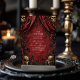 Step into a night of dark elegance with this gothic red curtain Halloween soirée design. Featuring dramatic velvet drapes, black roses, and gold-adorned skulls, it sets the perfect tone for a hauntingly glamourous celebration. Personalise with your details and host an unforgettable evening of mystery and macabre.