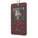 The Design features red and black damask and a red, bloody rose. Below the photo there is a bleeding red rose giving a mysterious and slightly dark touch. The rose symbolizes love and passion while the blood represents the depth of emotions.