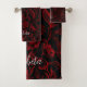 Gothic Red Flowers On Black Bath Towel Set