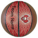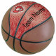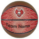 This custom basketball has a Gothic red heart outlined in white bones with a skull in the centre on a red background with spiral white lined pattern. Customise the name of your team with the templates.