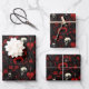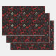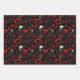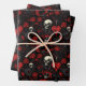 Gothic Red Hearts Black Flowers and Skulls Wrapping Paper Sheet