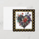 Gothic Red Rose and Heart Greetings Card Notecard in a gold frame on a gold and black background.