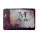 Bath mat personalised with your name and monogram initial. Designed with a gothic look. An old greying parchment paper with hints of purple-red around the edges. A magenta rose in full bloom, a rosebud, and a candle on a dark burgundy background creates a beautiful, dark and mysterious gothic design.