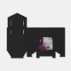Wedding favour box with a gothic look. An old greying parchment paper with hints of purple-red around the edges. A magenta rose in full bloom, a rosebud, a candle, and silver locket on a dark burgundy background creates a beautiful, dark and mysterious gothic design.