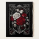 Red and white-grey roses in a vase, held in a grey, wrought-iron frame on a black background creates a lovely goth planer.