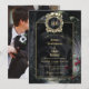 This black and gold gothic wedding invitation, featuring a gothic ruins with red roses scene, can be personalized with your monogram and wedding information in elegant typography and special photo on the reverse. Designed by Thisisnotme©